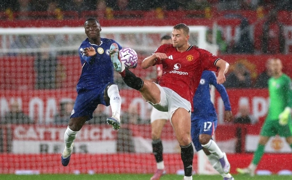 然而古代足球 的残酷在于,优势转瞬即逝。卡塞米罗两黄变一红被罚下场,曼联瞬间从多打一人变为十人应战。下半场在暴雨中演变为一场意志的较量。切尔西由查洛巴扳回一城,士气大振,攻势如潮。曼联合防守线风雨飘摇,正是在这最危急的时刻,德利赫特挺身而出。