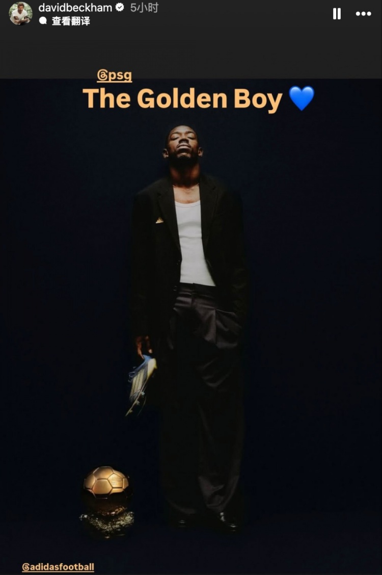 贝克汉姆社媒配文写道:天之骄子💙