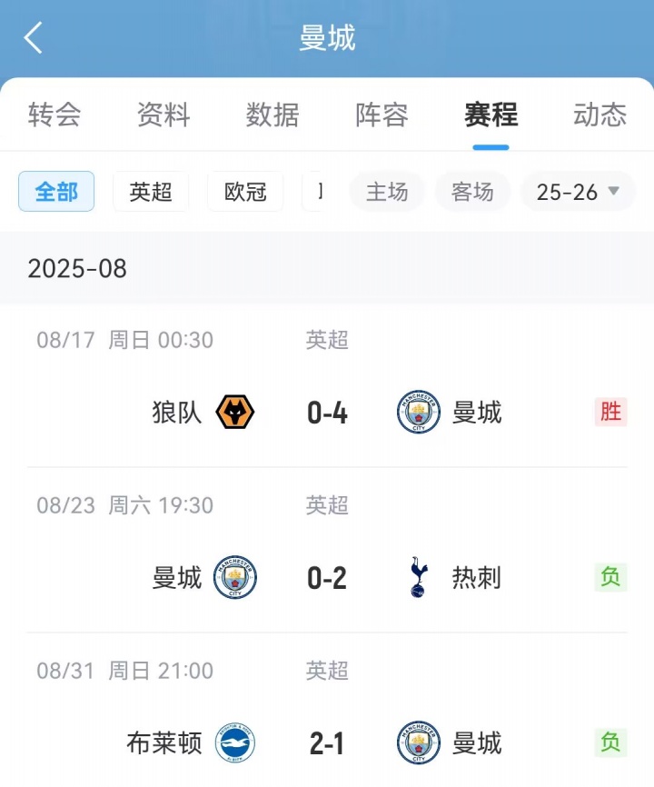 而曼城买下多纳鲁马前,苏超直播使用夏窗另一位新援守门员特拉福德的前3场赛事 中输掉了其中的两场(职业联赛 中分别不敌热刺、布莱顿)。多纳鲁马加盟后,特拉福德只为曼城在英联杯中出场1次,至今为曼城出场4次贡献2场零封。