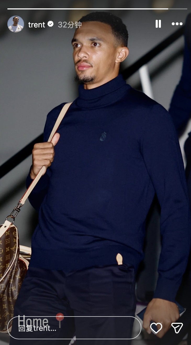 11月4日讯 皇马将在本轮欧冠小组赛中客场应战 对阵利物浦,皇马右后场球员阿诺德在个人INS上晒照,抵达利物浦。