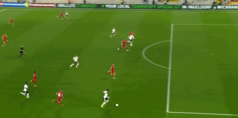 上半场的德国攻击 毫无头绪,光有着67%的盘带时间 ;场面几乎没有优势;好在是下半场回来第49分钟,萨内右路连停带过突然增速 奔袭横传危险区域 ,沃尔特马德包抄捅射入网,1:0!第51分钟,西纳尼危险区域 前沿背身回做,达尔达里左侧杀出低射滑门而过险些扳平比分。